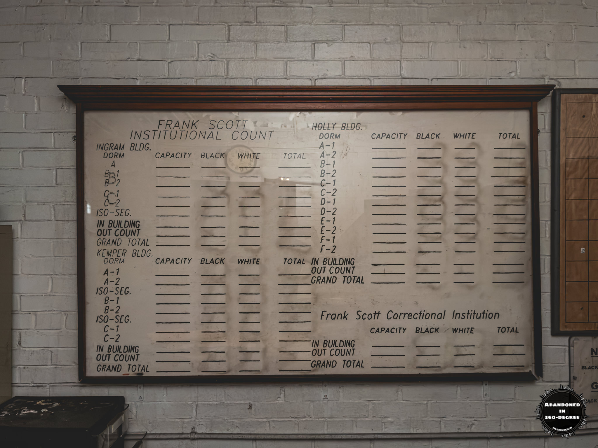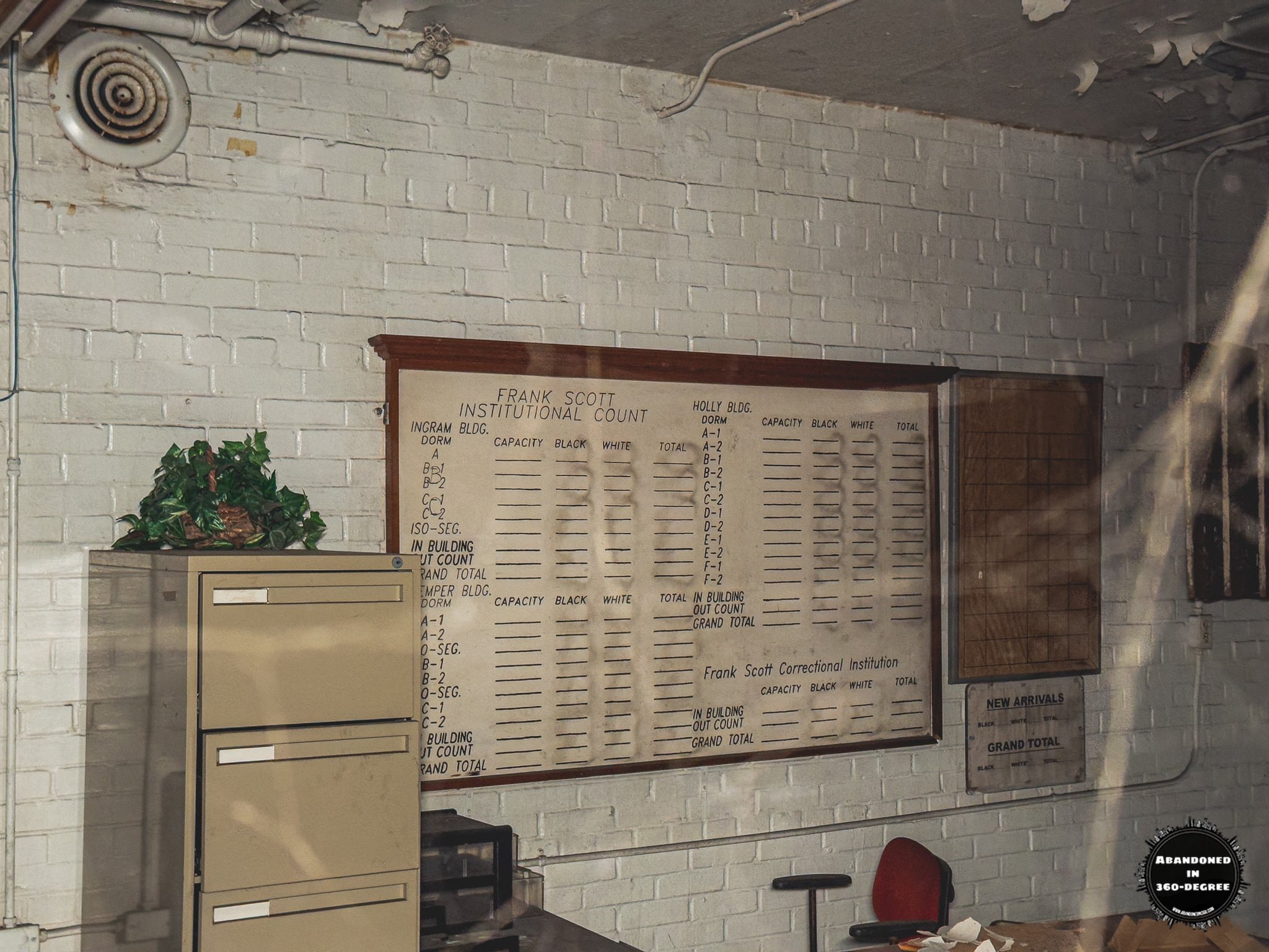 1981–2009: Part of Scott State Prison. In 1981 the state opened a modern medium-security prison named Frank C. Scott Jr. State Prison (often just “Scott State”) on the same grounds. The old hospital wings were incorporated into this complex. Kemper became the intake and maximum-security building for Scott State. All new prisoners were processed here, and the most dangerous offenders (including death-row inmates awaiting execution) were locked in Kemper’s small cells. Holly and Ingram housed lower-security inmates. This era left Kemper with graffiti, oil stains, and still-intact industrial features from the 1980s.