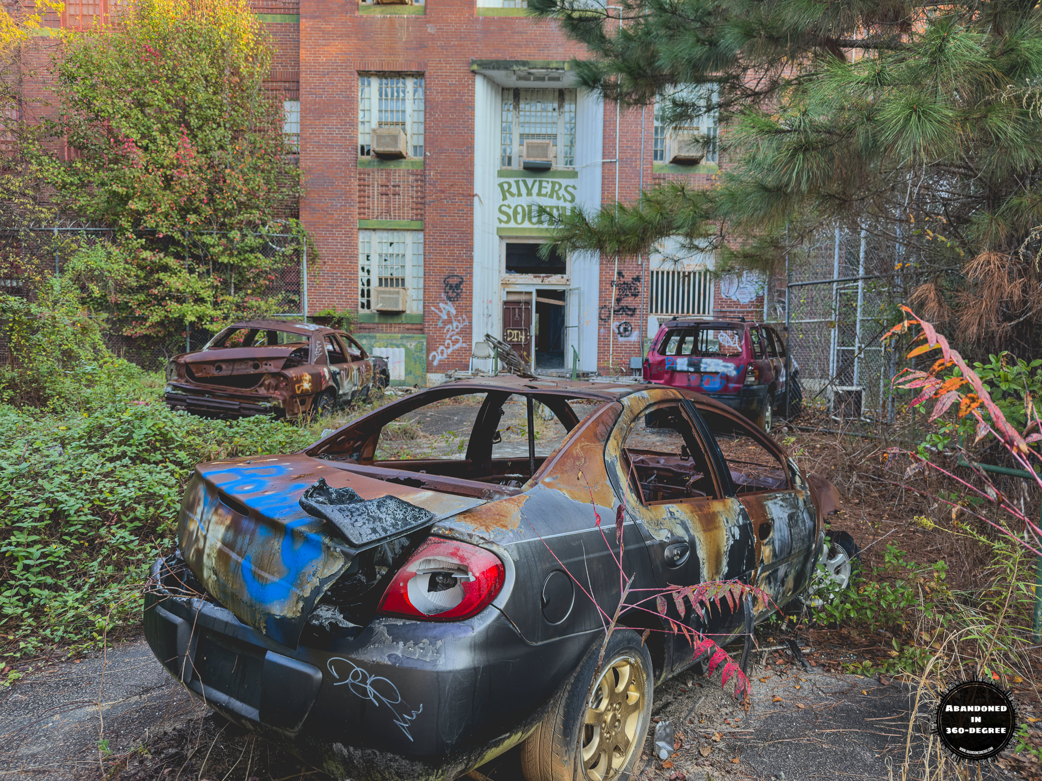 For more than a decade after its closure, Rivers State Prison simply sat in limbo. The State of Georgia retained ownership, but with no funds allocated for demolition or redevelopment, the property slowly deteriorated. Locals driving past the old hospital grounds could only wonder what would become of the fenced-in abandoned prison, as weeds overtook the fences and the paint peeled a bit more each passing season. It wasn’t until 2019 that the site saw a brief flicker of new activity – not from new inmates or redevelopment, but from Hollywood. A film production company leased the disused prison campus and used it as a filming location for several low-budget movies. For a short time, the cellblocks and halls were filled with actors and film crews instead of prisoners. The movie magic left its mark: when the filmmakers departed, they left behind props and set pieces that only added to the prison’s creepy ambiance. Today, explorers might stumble upon fake blood splatters, rubber “zombie” dummies, and even burned-out cars strewn about the complex – remnants of horror and action scenes that were staged on the grounds. These artifacts, combined with over a decade of neglect, have made the prison even more surreal. Graffiti tags now adorn many walls, ivy and kudzu vines snake up the brick exteriors, and whole sections of the campus are choked with overgrowth. Officially, Rivers State Prison remains in a state of arrested decay, watched over only sporadically by state security patrols. Unofficially, however, it has become a magnet for curious urban explorers (and intrepid photographers) drawn to its mix of history, mystery, and atmospheric ruin.