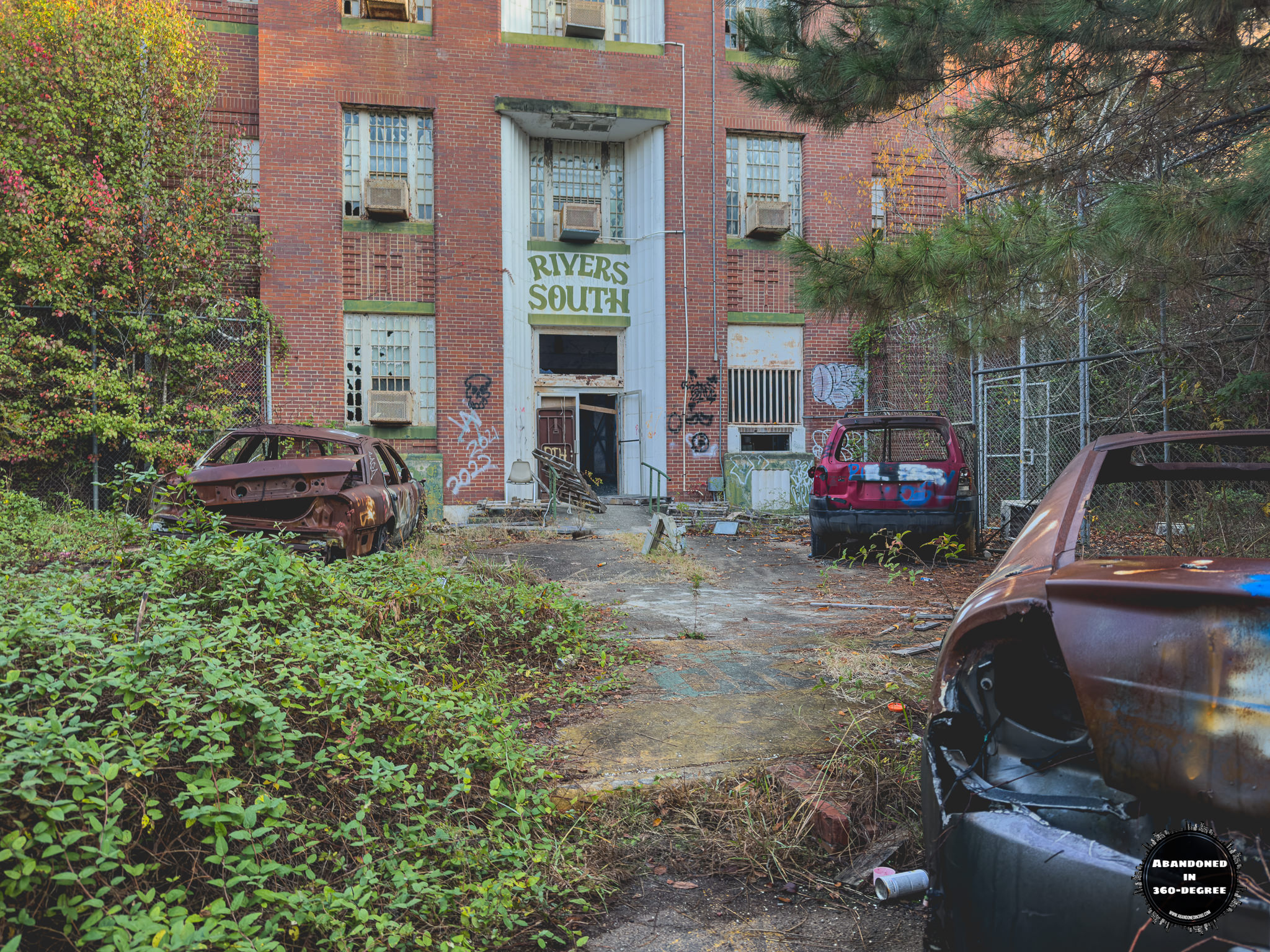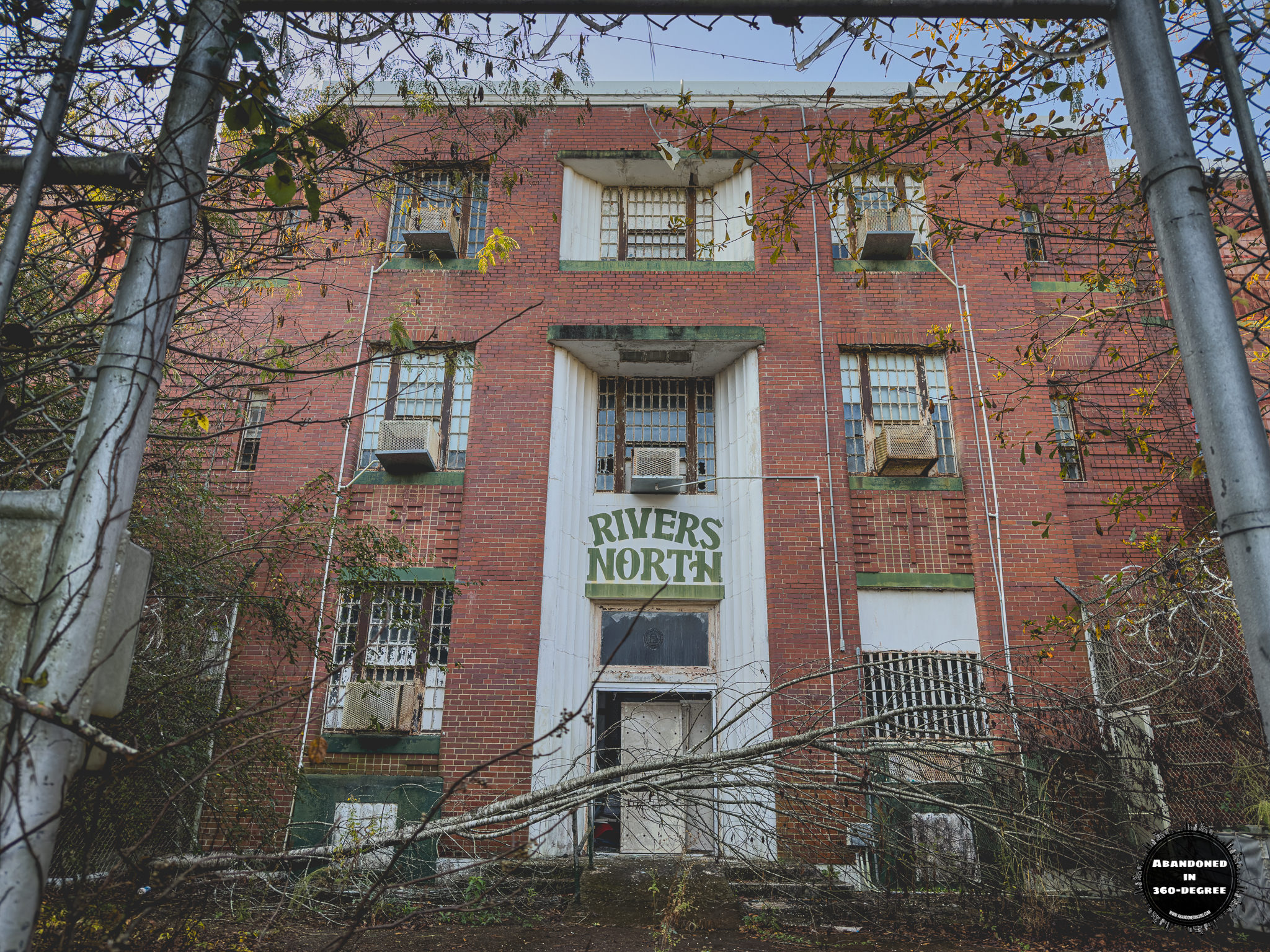 Wandering through the ruins of Rivers State Prison today is an awe-inspiring yet sobering experience. The approach to the complex immediately sets the mood: you pass through the outskirts of the old Central State Hospital grounds – an area aptly dubbed “Renaissance Park,” where many institutional buildings sit silent. Eventually you arrive at the prison’s perimeter: looming guard towers and layers of chain-link and razor-wire fence still encircle the property, delineating what was once a strict boundary between “inside” and “outside.” The main gate, long locked, is flanked by faded signs and the remains of a security checkpoint. Just beyond, you can see the multi-story brick facades of the Rivers buildings, their windows either boarded up or shattered into dark voids. Nature is slowly reclaiming the campus – tall grasses and weeds blanket the courtyards, and young trees have sprouted in the cracked pavement of the parking lot. It’s eerily quiet except for the rustle of leaves and the occasional bang of a loose metal sheet in the breeze.