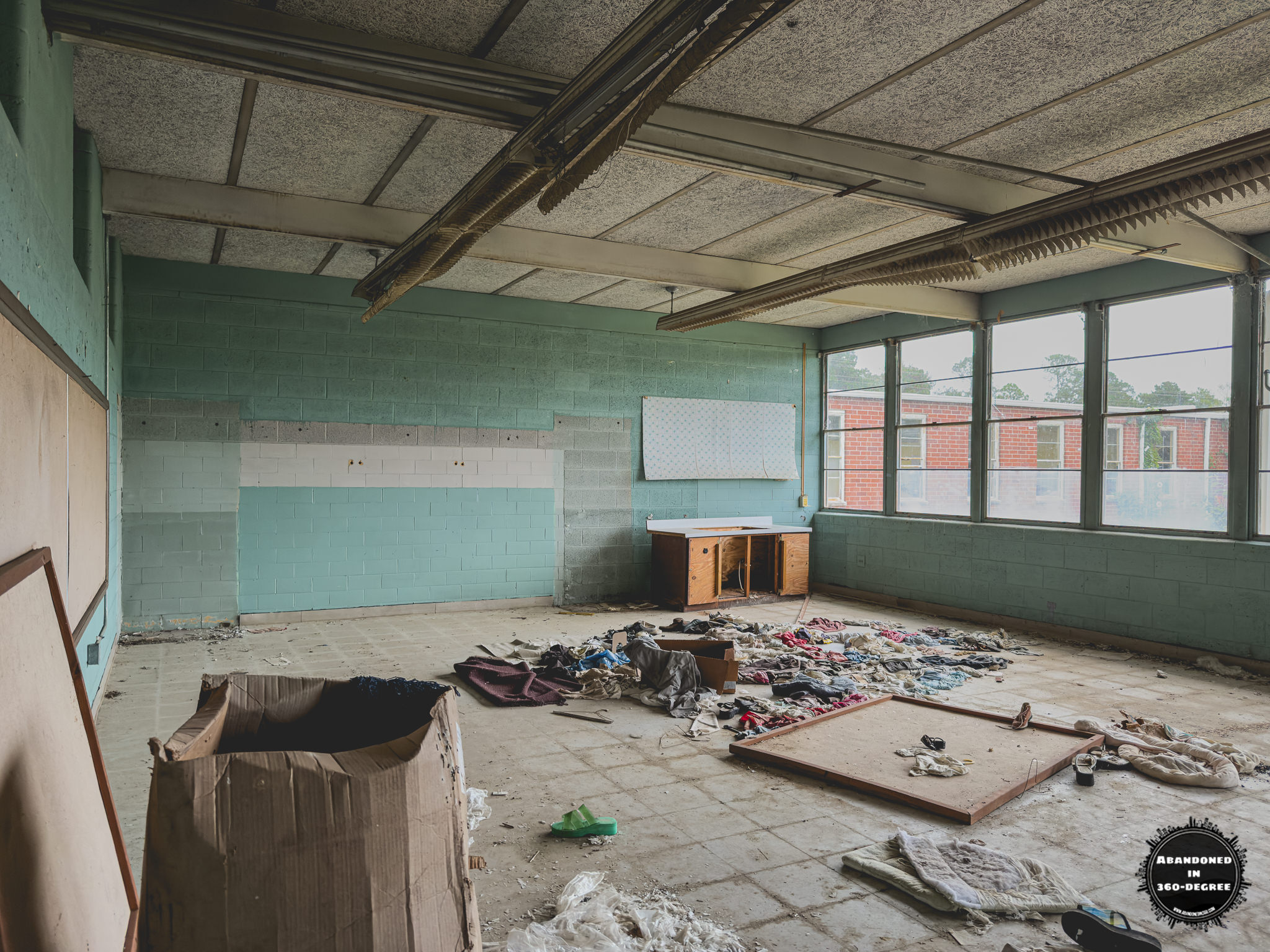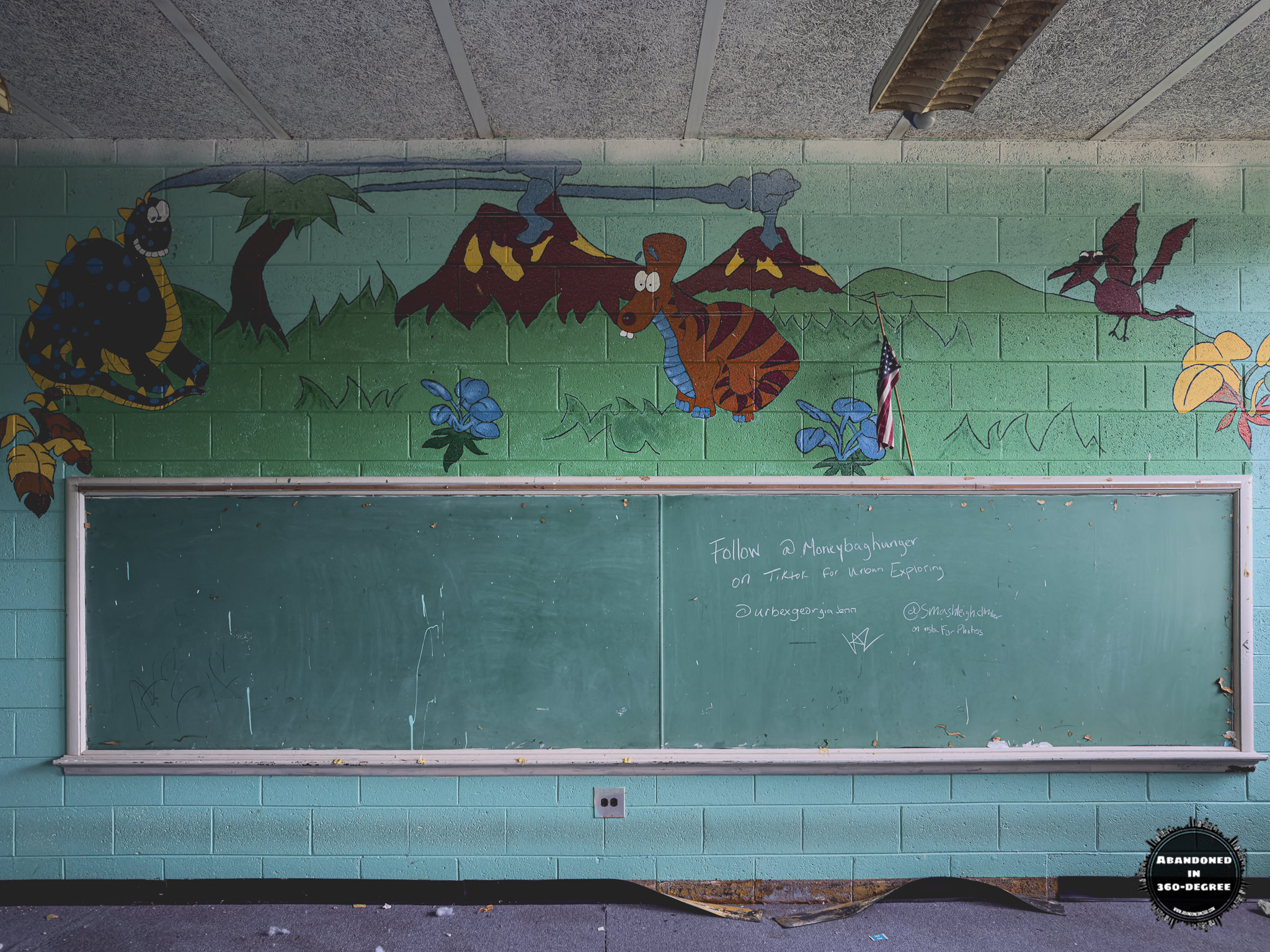 A 360-degree panoramic image inside one of the classrooms at the Southwest Elementary School in Georgia. Photo by the Abandoned in 360 URBEX Team.